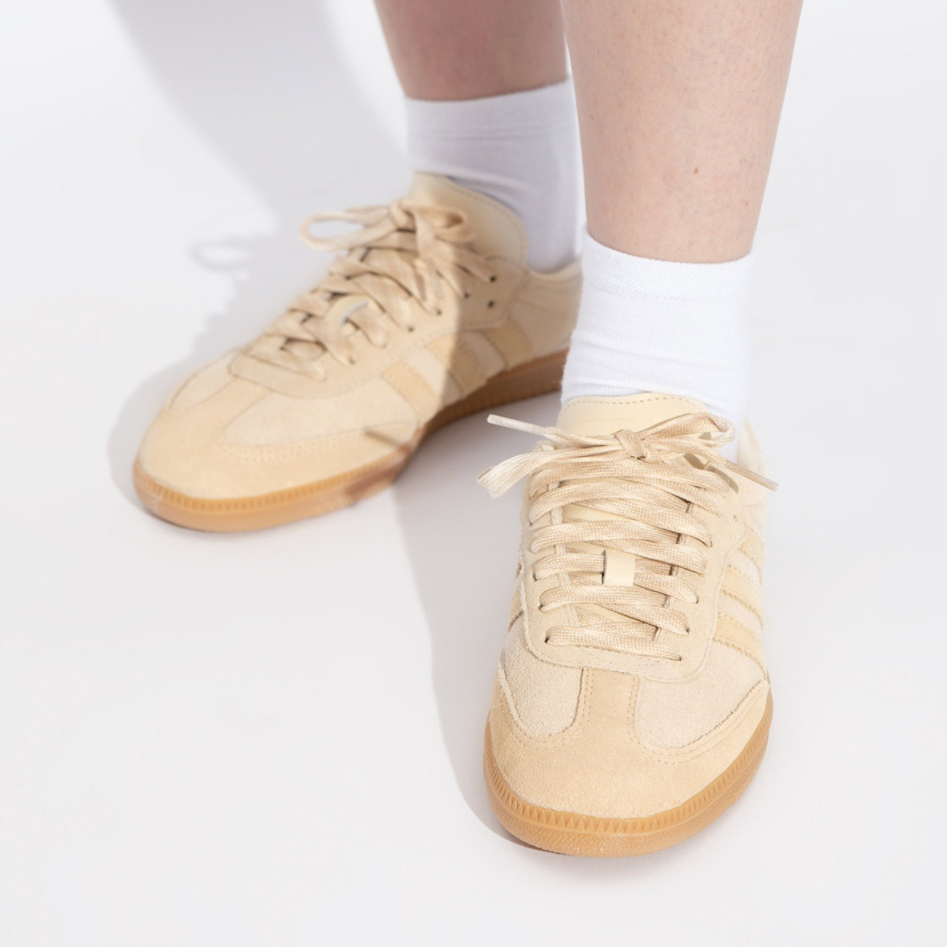 Đế giày làm từ cao su gum rubber, cung cấp độ bám tốt trên mọi bề mặt, đồng thời giữ nguyên phong cách cổ điển với mũi giày hình chữ T (T-toe) đặc trưng của dòng Samba.
