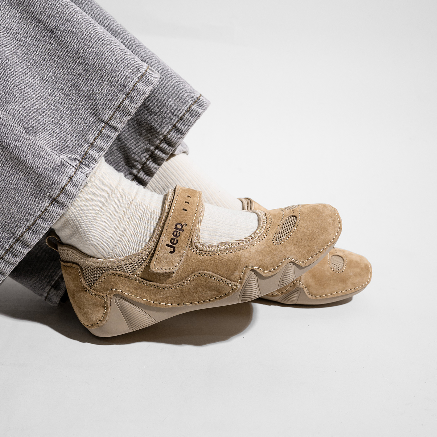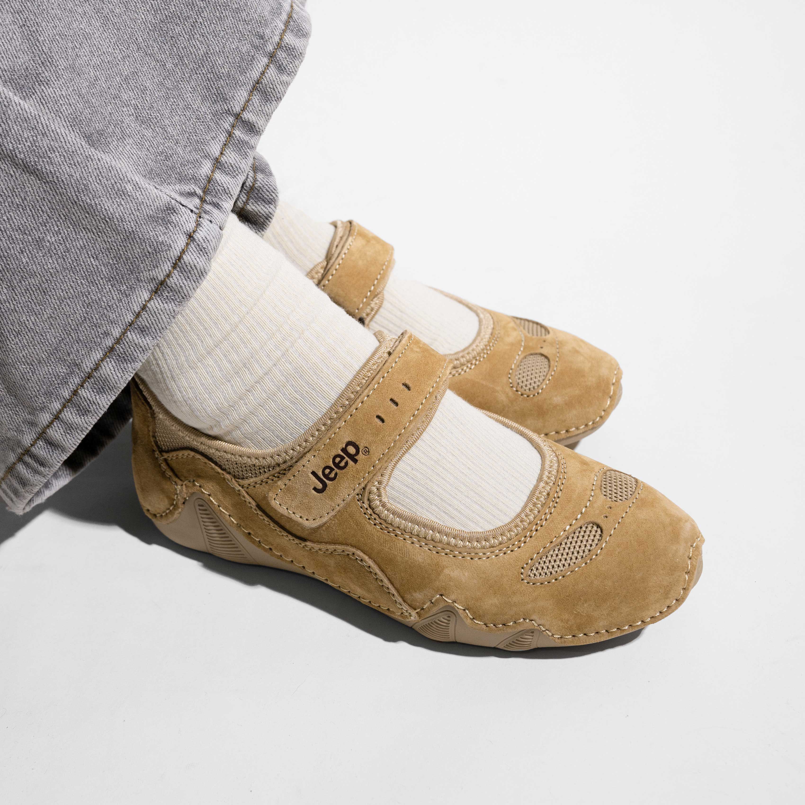 Logo Jeep được đặt ở vị trí nổi bật, khẳng định chất lượng và đẳng cấp của thương hiệu. Thiết kế tối giản nhưng không kém phần cá tính giúp mẫu giày này trở thành điểm nhấn ấn tượng cho bất kỳ bộ trang phục nào.