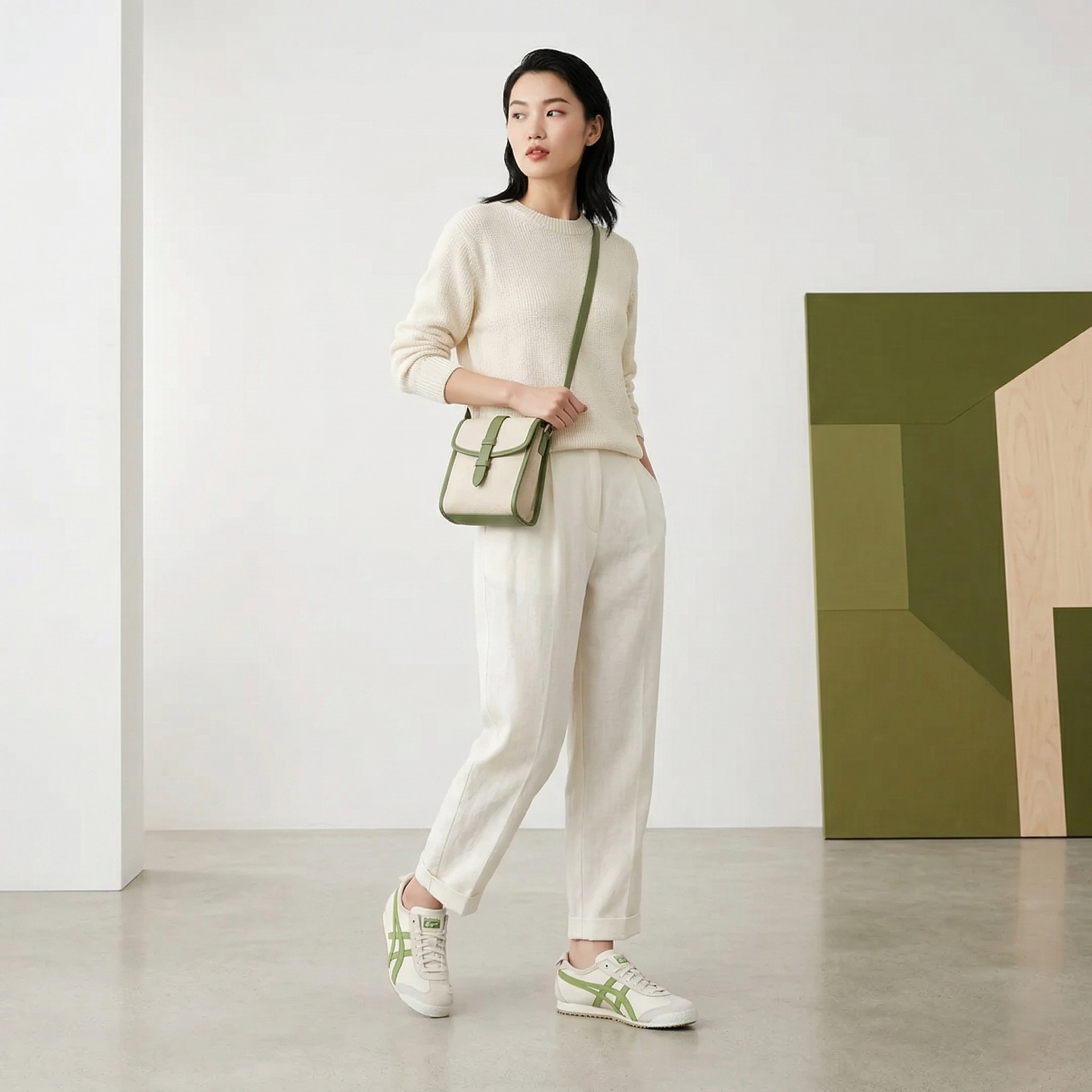 Phối màu cực kỳ dễ phối đồ: Từ quần Jean, Chinos đến chân váy hay Suit lịch lãm, sắc Birch Green đều cân được tất cả.