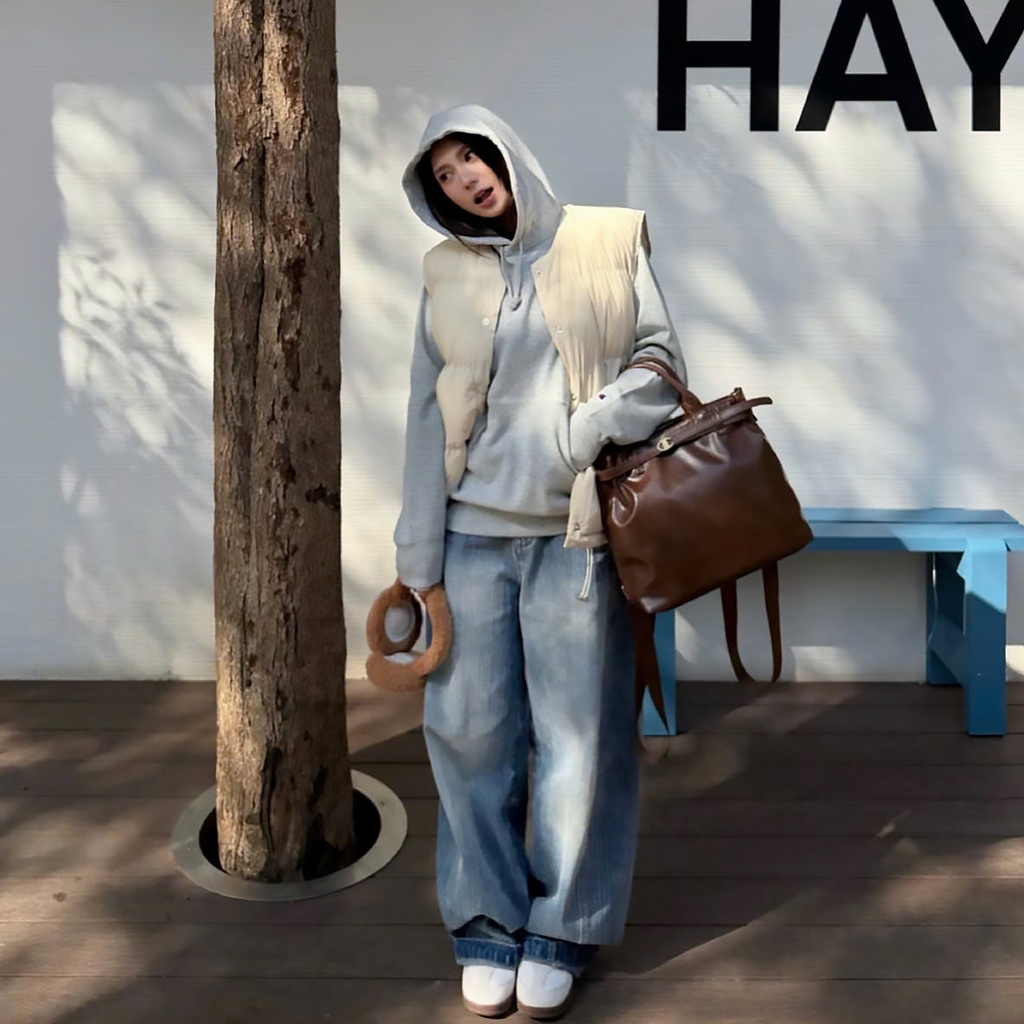 Phong cách Minimalist: Mix túi cùng một chiếc váy dài màu be hoặc trắng để tạo nên outfit tone-sur-tone thanh thoát.